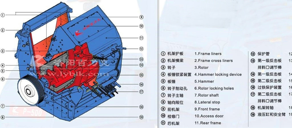 C:S系列反擊式破碎機(jī)可加裝起吊裝置,一般維護(hù)、易損件更換可避免使用吊車;
